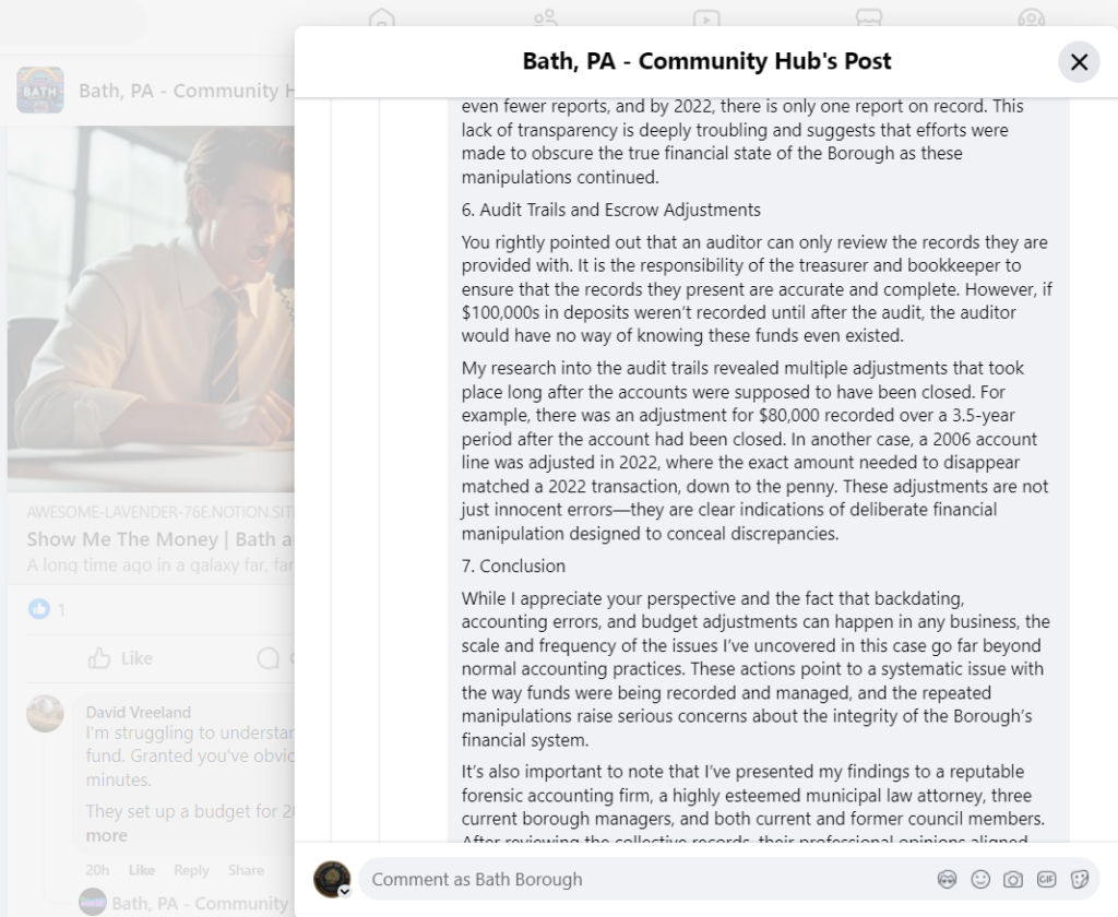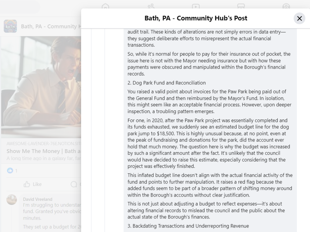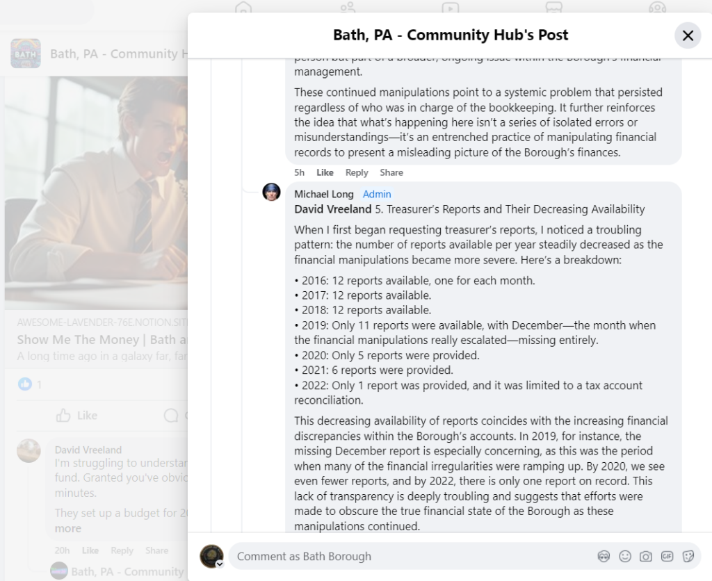 24 – Another Report by the Bath PA Community Hub & Michael Long Misinforming Bath’s Public | September 5 Post Report on Payroll Discrepancies and Potential Fraud in the Borough of Bath (2019-2022)